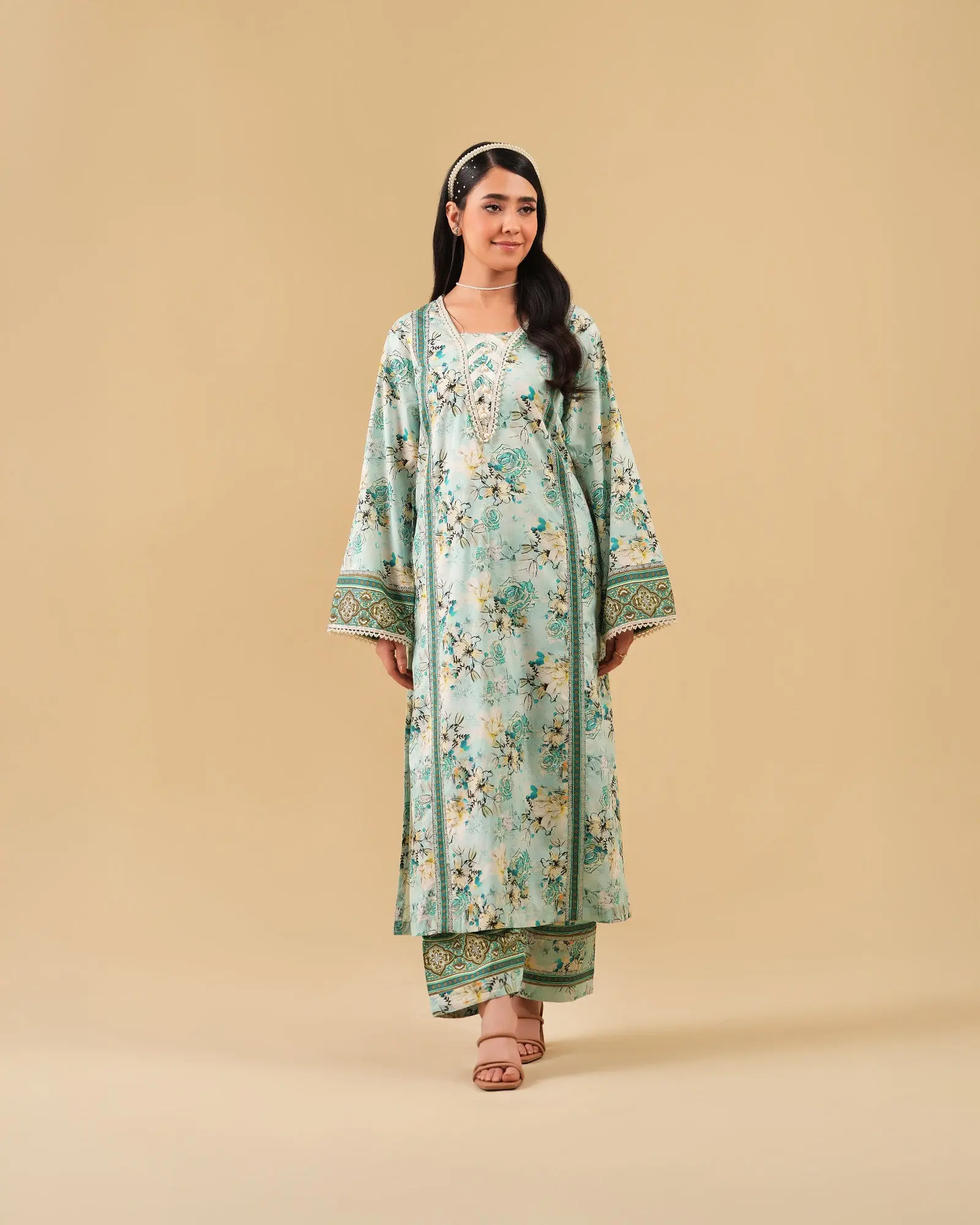 (Laces and embellishments are not included with unstitched articles.)