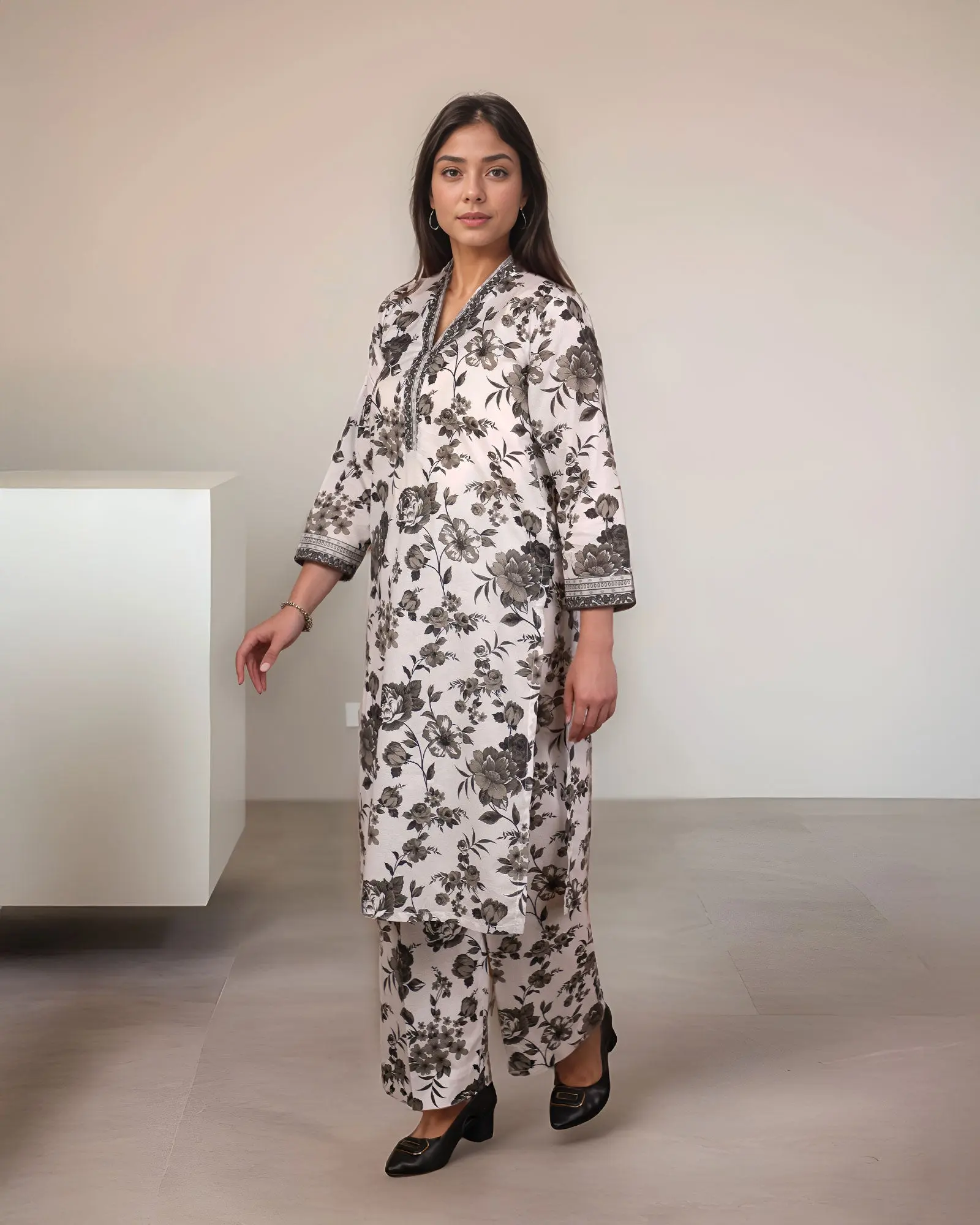 Let your style shine in this dynamic printed 2-piece, crafted for cool comfort and seamless transitions from day plans to night scenes.