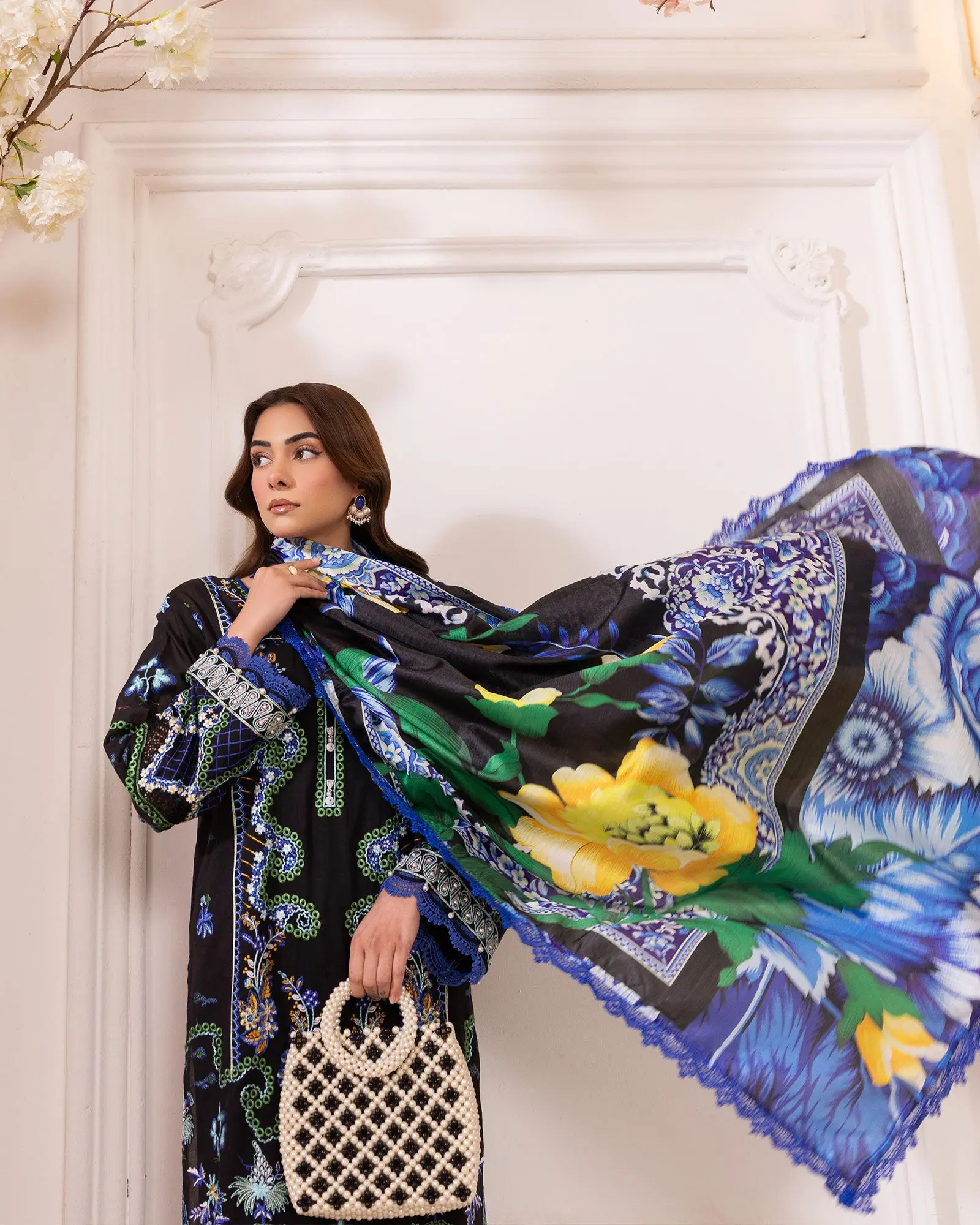 Beat the Heat in Style! Stay effortlessly chic with this 3-piece lawn suit, featuring delicate machine embroidery with motifs and a lace border. Paired with coordinated bordered trousers and a printed dupatta, this ensemble is a perfect blend of elegance and comfort.