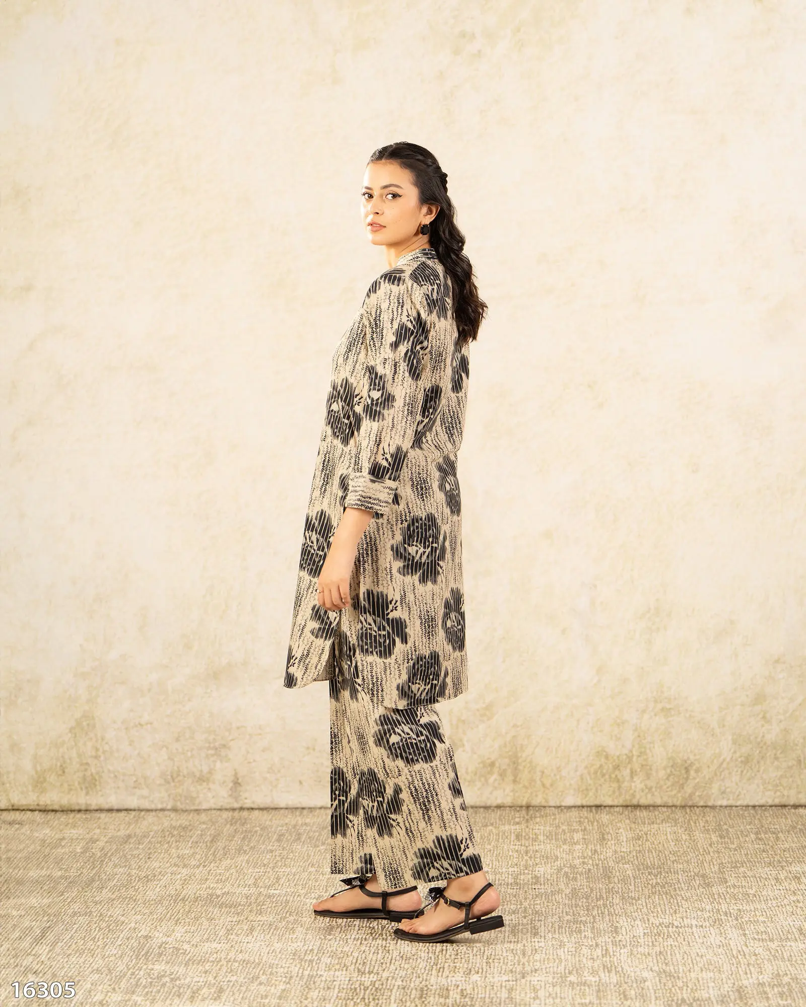 This khaddar printed 2-piece set is a true addition to your winter wardrobe and comes with a straight-line shirt paired with culottes.