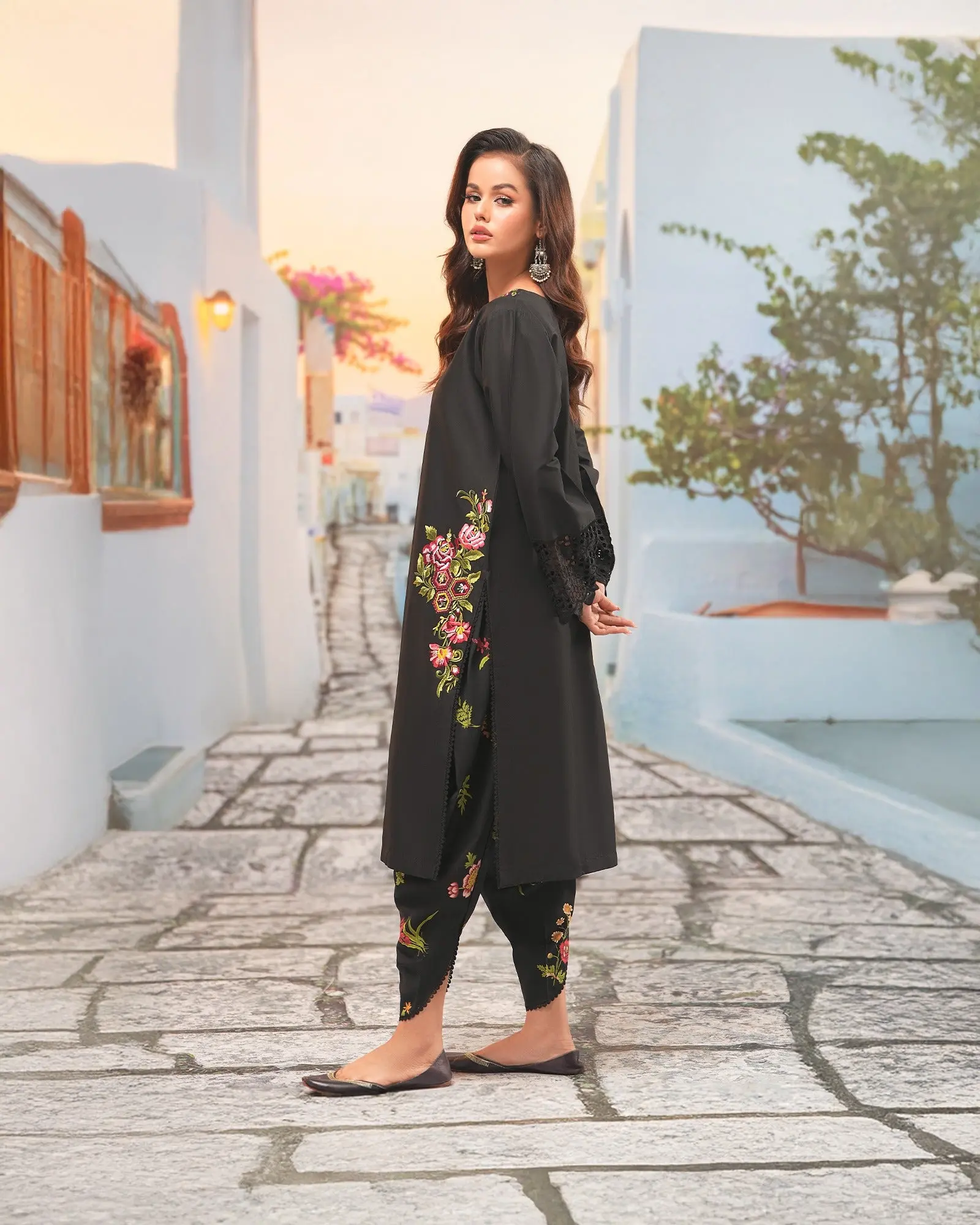 Embrace a sophisticated summer look with this 2-piece co-ord set, crafted with minimal details of chikenkari work and contrasting embroidery on sides and neckline and matched with printed shalwar. Enjoy the perfect harmony of simplicity and style for a chic, modern appeal.